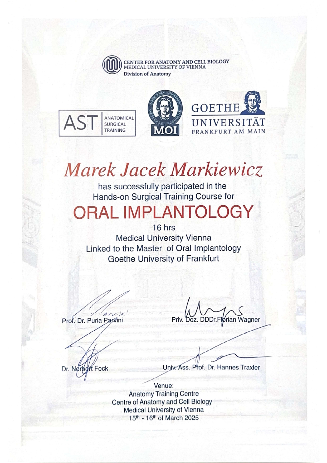 Markiewicz Clinic tworzą ludzie dla których stomatologia to pasja. Nieustannie podnosimy swoje kwalifikacje uczestnicząc w licznych konferencjach i kursach dedykowanych dla stomatologów w kraju i za granicą. Prowadzimy badania naukowe na uczelniach medycznych.