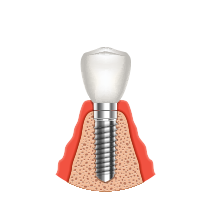 A dental implant replaces a lost dental root. An artificial root provides the base for restoring a structure of a new tooth. Such a solution is least invasive, as it does not involve any reduction of adjacent teeth as opposed to classic bridges.