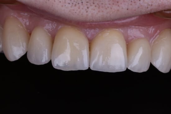 Po przeprowadzonym badaniu oraz wykonaniu cyfrowego projektu uśmiechu, pacjent przeszedł krótkie i szybkie leczenie ortodontyczne (3 m-ce). Umożliwiło to bezpreparacyne (bez szlifowania) wykonanie licówek ceramicznych doklejanych do zębów własnych.